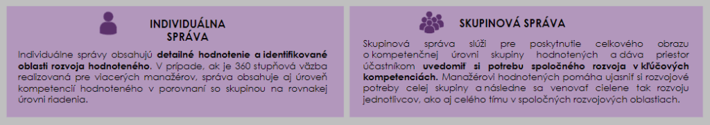 Z nášho pohľadu vidíme veľkú pridanú hodnotu ukázať hodnoteným najprv skupinovú správu, ktorá je anonymná a kde môžu z makroperspektívy firmy vidieť, ktoré kompetencie majú najviac rozvinuté a ktoré naopak najmenej.